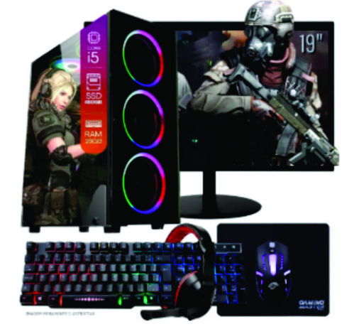 Computador PC Gamer Completo Intel Core i5 SSD 240GB 8GB Teclado Mouse Mouse Pad e Headset Gamer Monitor 19" Windows 11 Pro Trial